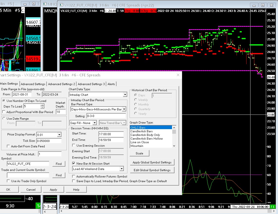 Use this symbol: VXJ22_FUT_CFE All the symbols should be of this general format. Change them in the charts and quote boards. Instructions: Changing the Symbol of a Chart: Changing the Symbol of a Chart or Trade DOM Through Chart Settings Sierra Chart Support - Engineering Level Your definitive source for support. Other responses are from users. Try to keep your questions brief and to the point. Be aware of support policy: https://www.sierrachart.com/index.php?l=PostingInformation.php#GeneralInformation For the most reliable, advanced, and zero cost futures order routing, *change* to the Teton service: Sierra Chart Teton Futures Order Routing |