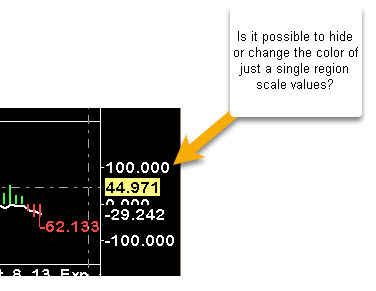 Is it possible to hide scale values by individual regions? Or change the scale text color to my background color just for a single region? I have studies that show the current/last value, and in those cases, the overlap of info can get confusing. I prefer KISS. I'm simple minded. As an FYI - I use sc.Subgraph[].LineLabel to show my study values in the scale area (Left & Right). Thanks in advance for the help or direct me to some doc for a "user option" or ACSIL statement option. JohnR |