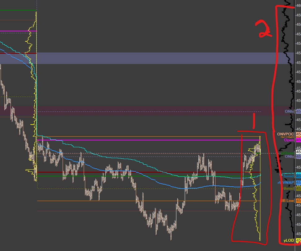 Hello, is there a way to separate only the last/current day profile when using multiple daily profiles so that its not overlapping the current price bars? I use the profile aligned to the right but its hard to see the bars as the day is developing. I have included my sierra screenshot and a screenshot of another platform to give an idea of what I mean in case I didnt describe well. Thanks in advance!