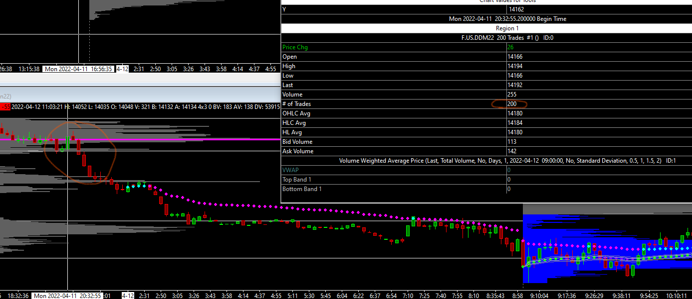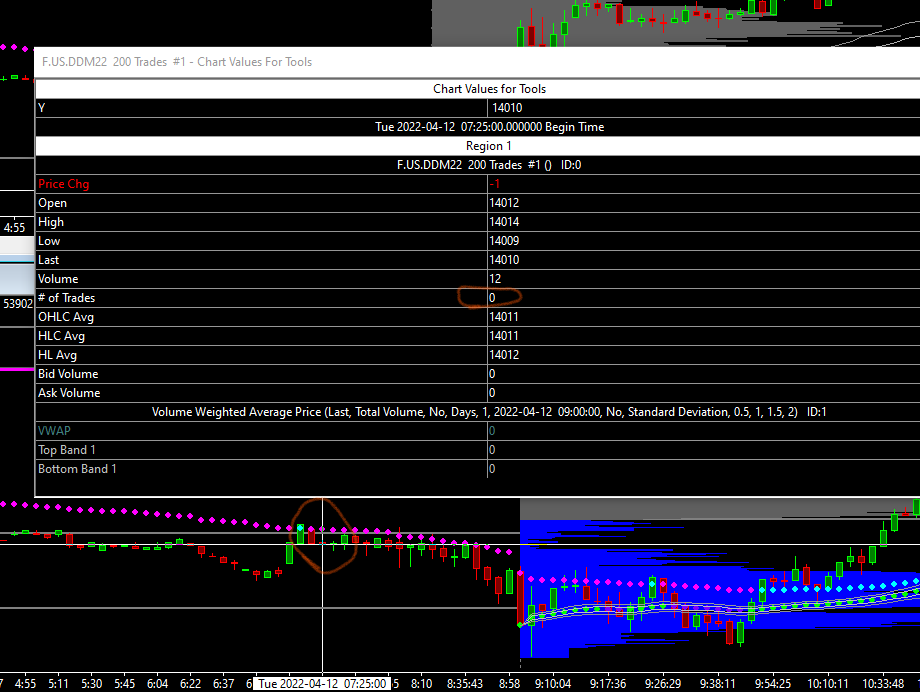 OK, as you can see, before point 2 and after poin 3 from the prewieus screenshot, the # of trades are correct (200 or 1000) and, in fact, the bars looks different one to the other. In the middle from point 2 and 3, the # of trade is 0. This is the issue. Haw can i fix it? Many ths |