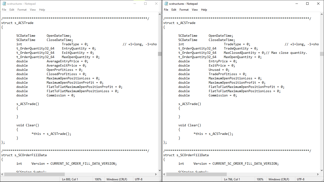 I updated my sierra chart from 2372 version to 2383 version. I found some variable names in ACS_Source/scstructure.h -> structure s_ACSTrade I was wondering whether it is limited to only variable name change as below: EntryQuantity -> TradeQuantity ExitQuantity -> MaxClosedQuantity AverageEntryPrice -> EntryPrice AverageExit -> ExitPrice OpenProgitLoss -> Unused ClosedProfitLoss -> TradeProfitLoss or it affect how we use these variable as well. In short is it fine to just change the name of the variable in the customStudy. |
