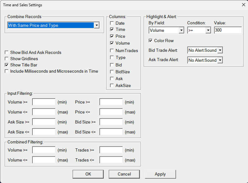 No, I don't have volume filtering . I set all as default. hope I will get the solution very soon. I have been subscribing NQTV data since launched, but never able to get the right data from it.