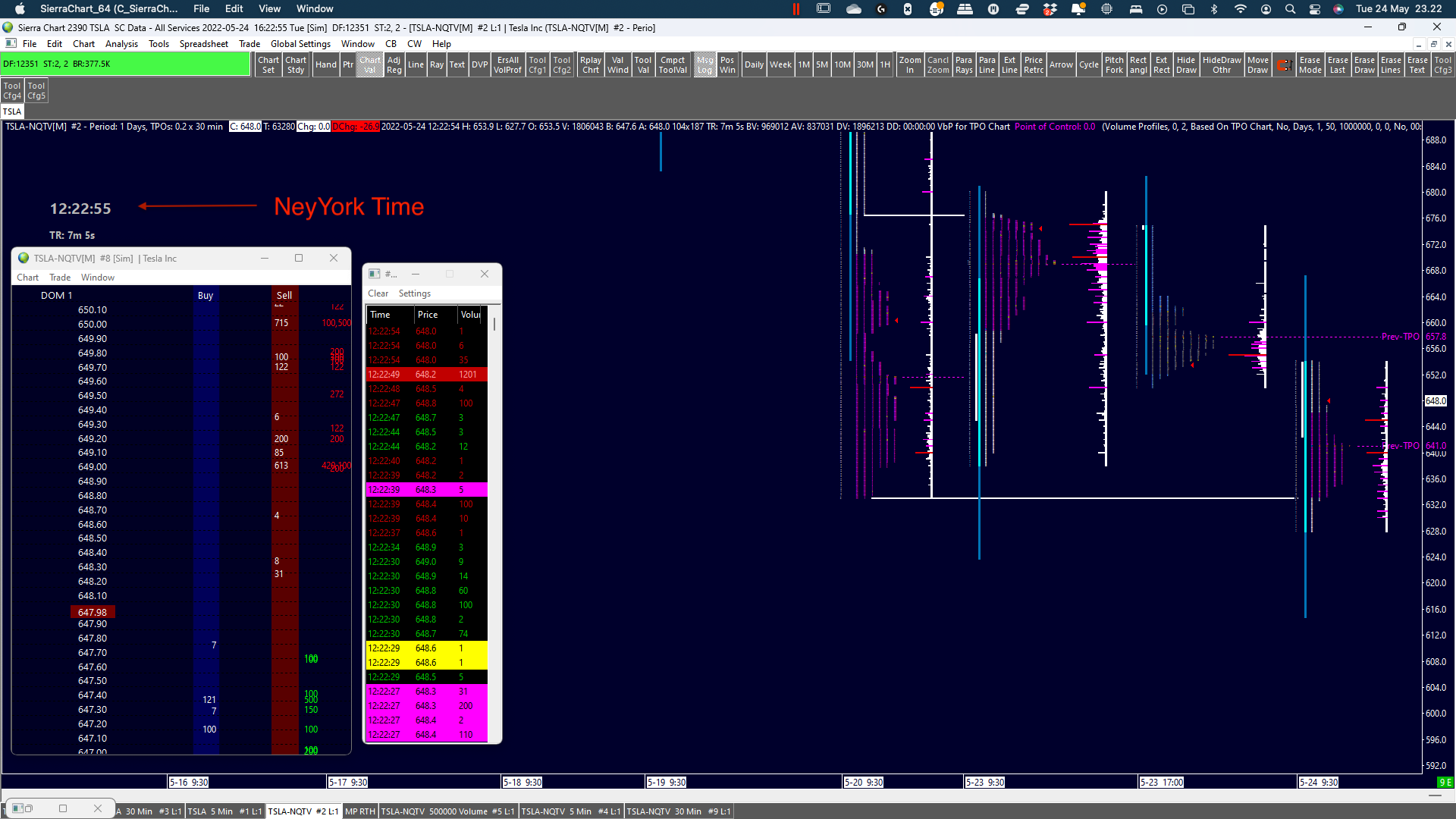 What number do you have for the Combine Increment in Ticks for the TSLA-NQTV chart? Here is what we see when we use a Combine Increment in Ticks of 50: https://www.sierrachart.com/image.php?Image=165237813666.png For the most reliable, advanced, and zero cost futures order routing, use the Teton service: Sierra Chart Teton Futures Order Routing |