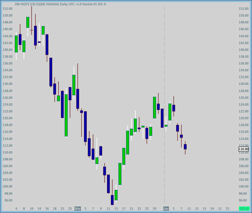 What would be the reason for this? It stopped getting daily data, past day April 8th. 9 days ago. but it downloads lower TF data, like in 30 minutes or 240m I'm paying for the Datafeed. I'm in v2384 By the way, at least the indexes, often, end with and extra daily candle, in my chartbook. I've found that, weirdly enought, if I replicate the chart, then that extra candle dissapears. But I would not want to go replicating the chart that often because I have the charts sorted in a certain way. Is there any way to avoid this? Attached a chart of the ZOOM stock, with the missing candles, and another one of the emini SP500, with the double candle. Thanks |