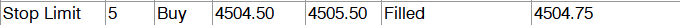 I am testing an automated trading system that places entries using Stop Limit orders. The limit portion of the Stop Limit is not being respected. Attached screenshot shows that a Buy Stop Limit order placed at 4504.50 was filled at 4504.75. This is on SC version 2383.