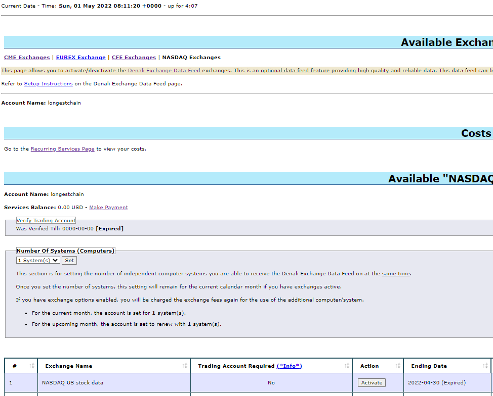 Activated NASDAQ data feed but asking to renew again
