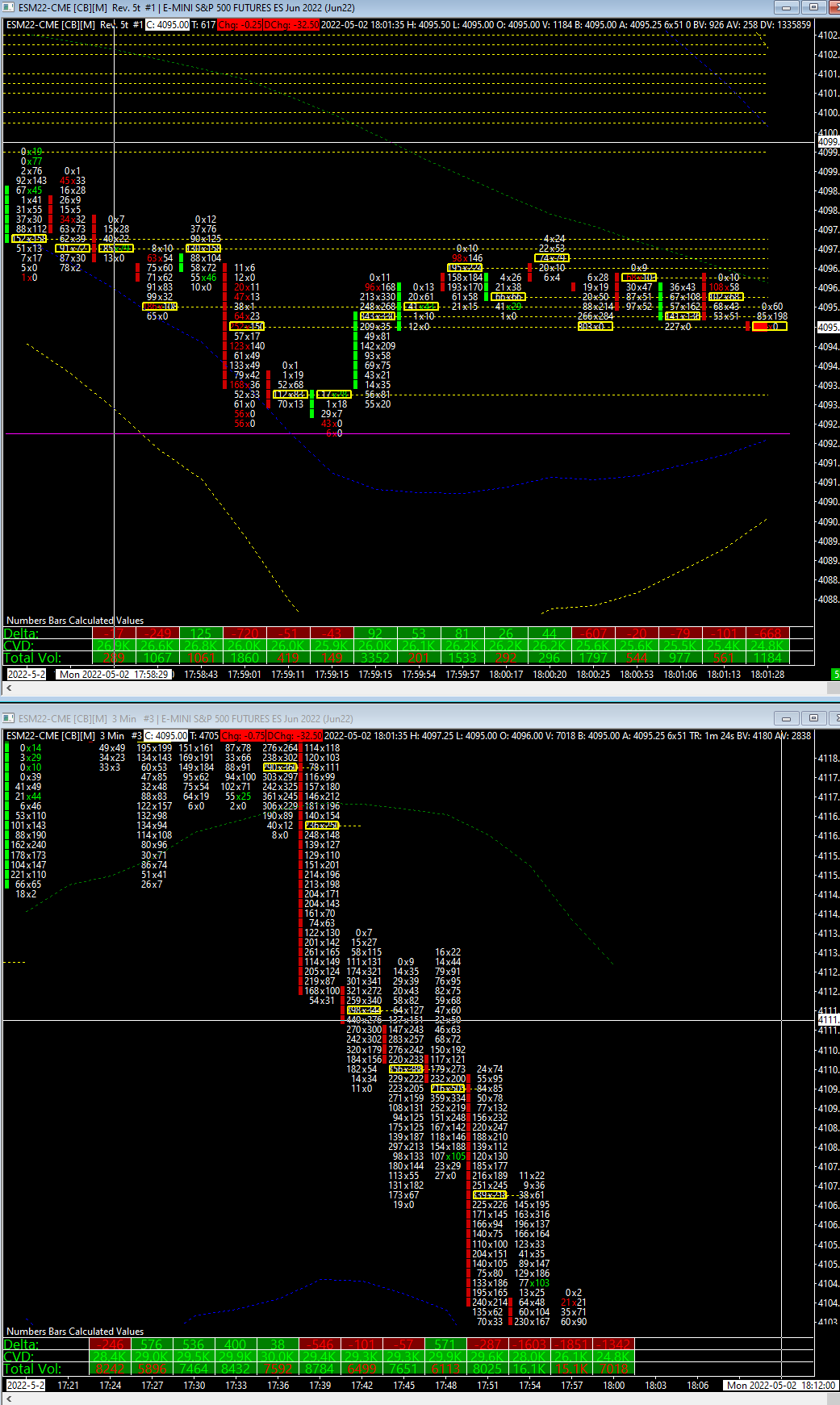 the top is a 5 tick reversal where i have the prob the bottom is a 3 min - other than that settings the same