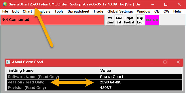 Version 10 is the download/install program version. To see the version of SierraCharts, it can been seen in two places. The top left of your chart or by pressing Help / About. Hope this helps JohnR |
