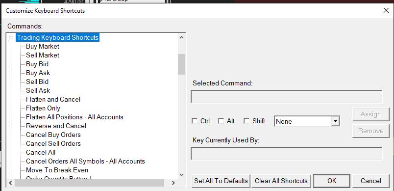 We believe that you are asking for a "Buy Limit" and "Sell Limit" keyboard shortcut. The reason why there are not keyboard shortcuts available for this is because if you just use the keyboard, how would the system know at what price you would want to place the order? When you use the mouse, it is able to use the position of the mouse to determine the price level at which to place the order. If you are asking about how to attach different attached orders, then this can be done by using different trade configurations. Refer to the following: Basic Trading and the Trade Window: Using and Changing Between Different Trade Window and Attached Orders Configurations For the most reliable, advanced, and zero cost futures order routing, use the Teton service: Sierra Chart Teton Futures Order Routing |