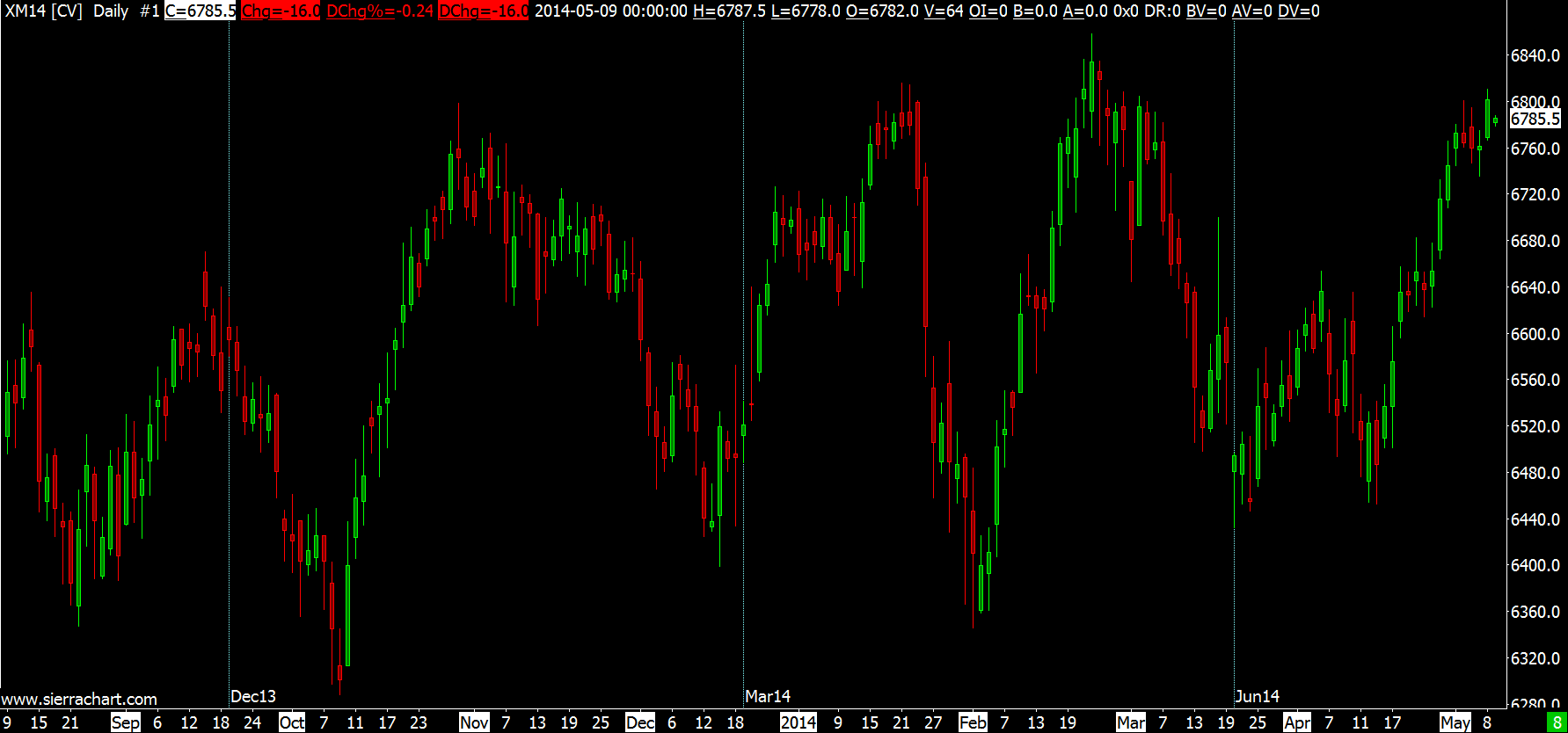 Ok, I now have data but with large gaps when the volume-based rollover occurs. See attached image, but I can see that on every rollover date I am missing almost 3 months of data. Note there is no rollover rule defined in the symbol page, not sure if this is relevant with the automatic volume rollover. Chart #1 is performing a full recalculation because it has been tagged. Chartbook: FTSE.cht | 2014-05-08 05:35:49 Limiting the number of days back for the continuous futures chart to 4.9993155 years based on the account type. | 2014-05-08 05:35:57 Date rule based rollover from FTSEM9 to next contract occurs at 2009-07-01 | 2014-05-08 05:35:57 Date rule based rollover from FTSEU9 to next contract occurs at 2009-10-01 | 2014-05-08 05:35:57 Date rule based rollover from FTSEZ9 to next contract occurs at 2010-01-01 | 2014-05-08 05:35:57 Date rule based rollover from FTSEH0 to next contract occurs at 2010-04-01 | 2014-05-08 05:35:57 Date rule based rollover from FTSEM0 to next contract occurs at 2010-07-01 | 2014-05-08 05:35:57 Date rule based rollover from FTSEU0 to next contract occurs at 2010-10-01 | 2014-05-08 05:35:57 Date rule based rollover from FTSEZ0 to next contract occurs at 2011-01-01 | 2014-05-08 05:35:57 Date rule based rollover from FTSEH1 to next contract occurs at 2011-04-01 | 2014-05-08 05:35:57 Date rule based rollover from FTSEM1 to next contract occurs at 2011-07-01 | 2014-05-08 05:35:57 Date rule based rollover from FTSEU1 to next contract occurs at 2011-10-01 | 2014-05-08 05:35:57 Date rule based rollover from FTSEZ1 to next contract occurs at 2012-01-01 | 2014-05-08 05:35:57 Date rule based rollover from FTSEH2 to next contract occurs at 2012-04-01 | 2014-05-08 05:35:57 Date rule based rollover from FTSEM2 to next contract occurs at 2012-07-01 | 2014-05-08 05:35:57 Date rule based rollover from FTSEU2 to next contract occurs at 2012-10-01 | 2014-05-08 05:35:57 Date rule based rollover from FTSEZ2 to next contract occurs at 2013-01-01 | 2014-05-08 05:35:57 Date rule based rollover from FTSEH3 to next contract occurs at 2013-04-01 | 2014-05-08 05:35:57 Date rule based rollover from FTSEM3 to next contract occurs at 2013-07-01 | 2014-05-08 05:35:57 Date rule based rollover from FTSEU3 to next contract occurs at 2013-10-01 | 2014-05-08 05:35:57 Date rule based rollover from FTSEZ3 to next contract occurs at 2014-01-01 | 2014-05-08 05:35:57 Date rule based rollover from FTSEH4 to next contract occurs at 2014-04-01 | 2014-05-08 05:35:57 Date rule based rollover from FTSEM4 to next contract occurs at 2014-07-01 | 2014-05-08 05:35:57 Rollover rule does not exist for FTSEM9 and the Intraday data file exists. Not checking if Intraday data needs to be downloaded for symbol. | 2014-05-08 05:35:57 Rollover rule does not exist for FTSEM9 and the Daily data file exists. Not checking if Daily data needs to be downloaded for symbol. | 2014-05-08 05:35:57 Intraday data file for FTSEU9 exists and is empty. Skipping Intraday data download. | 2014-05-08 05:35:57 Rollover rule does not exist for FTSEU9 and the Daily data file exists. Not checking if Daily data needs to be downloaded for symbol. | 2014-05-08 05:35:57 Rollover rule does not exist for FTSEZ9 and the Intraday data file exists. Not checking if Intraday data needs to be downloaded for symbol. | 2014-05-08 05:35:57 Rollover rule does not exist for FTSEZ9 and the Daily data file exists. Not checking if Daily data needs to be downloaded for symbol. | 2014-05-08 05:35:57 Rollover rule does not exist for FTSEH0 and the Intraday data file exists. Not checking if Intraday data needs to be downloaded for symbol. | 2014-05-08 05:35:57 Rollover rule does not exist for FTSEH0 and the Daily data file exists. Not checking if Daily data needs to be downloaded for symbol. | 2014-05-08 05:35:57 Rollover rule does not exist for FTSEM0 and the Intraday data file exists. Not checking if Intraday data needs to be downloaded for symbol. | 2014-05-08 05:35:57 Rollover rule does not exist for FTSEM0 and the Daily data file exists. Not checking if Daily data needs to be downloaded for symbol. | 2014-05-08 05:35:57 Rollover rule does not exist for FTSEU0 and the Intraday data file exists. Not checking if Intraday data needs to be downloaded for symbol. | 2014-05-08 05:35:57 Rollover rule does not exist for FTSEU0 and the Daily data file exists. Not checking if Daily data needs to be downloaded for symbol. | 2014-05-08 05:35:57 Rollover rule does not exist for FTSEZ0 and the Intraday data file exists. Not checking if Intraday data needs to be downloaded for symbol. | 2014-05-08 05:35:57 Rollover rule does not exist for FTSEZ0 and the Daily data file exists. Not checking if Daily data needs to be downloaded for symbol. | 2014-05-08 05:35:57 Rollover rule does not exist for FTSEH1 and the Intraday data file exists. Not checking if Intraday data needs to be downloaded for symbol. | 2014-05-08 05:35:57 Rollover rule does not exist for FTSEH1 and the Daily data file exists. Not checking if Daily data needs to be downloaded for symbol. | 2014-05-08 05:35:57 Rollover rule does not exist for FTSEM1 and the Intraday data file exists. Not checking if Intraday data needs to be downloaded for symbol. | 2014-05-08 05:35:57 Rollover rule does not exist for FTSEM1 and the Daily data file exists. Not checking if Daily data needs to be downloaded for symbol. | 2014-05-08 05:35:57 Rollover rule does not exist for FTSEU1 and the Intraday data file exists. Not checking if Intraday data needs to be downloaded for symbol. | 2014-05-08 05:35:57 Rollover rule does not exist for FTSEU1 and the Daily data file exists. Not checking if Daily data needs to be downloaded for symbol. | 2014-05-08 05:35:57 Rollover rule does not exist for FTSEZ1 and the Intraday data file exists. Not checking if Intraday data needs to be downloaded for symbol. | 2014-05-08 05:35:57 Rollover rule does not exist for FTSEZ1 and the Daily data file exists. Not checking if Daily data needs to be downloaded for 