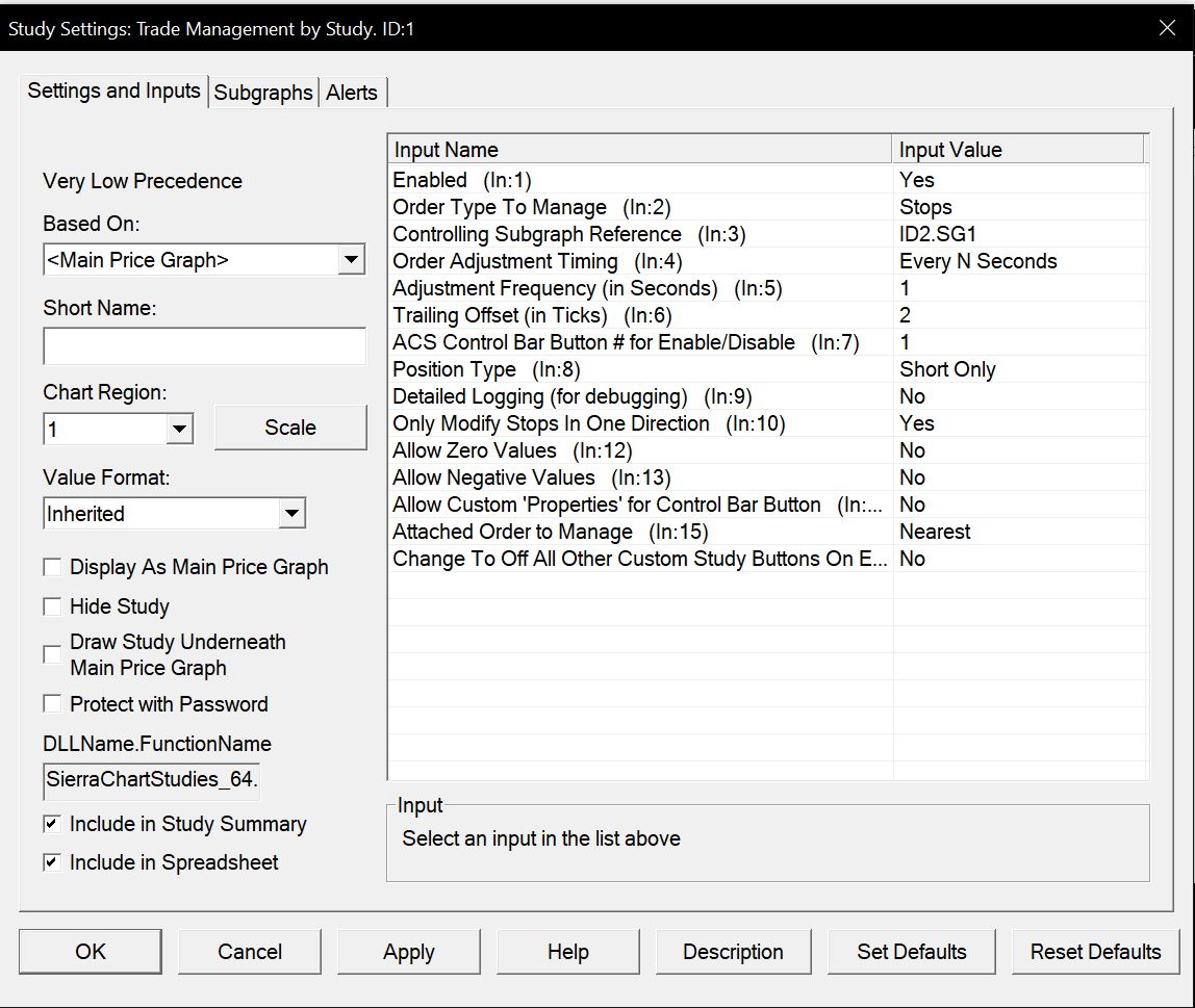 Hello, When using Trade by Management in conjunction (Controlling Subgraph Reference) with SuperTrend it places Dashes on chart that are used for trailing the Stops. If the price moves a little in the opposite direction the Dash disappears and it closes the position. I have set: Only Modify Stop In One Direction set to Yes. Position Type: Set to only either Short or Long depending on the entry. Is there a way that if the Dash disappears when the price fluctuates a little bit it will not close position and just leave stop at the current level it is in? Usually, this only happens with the first and second Dash line as after the third and following Dashes it won't have this effect of closing position. Thanks, |