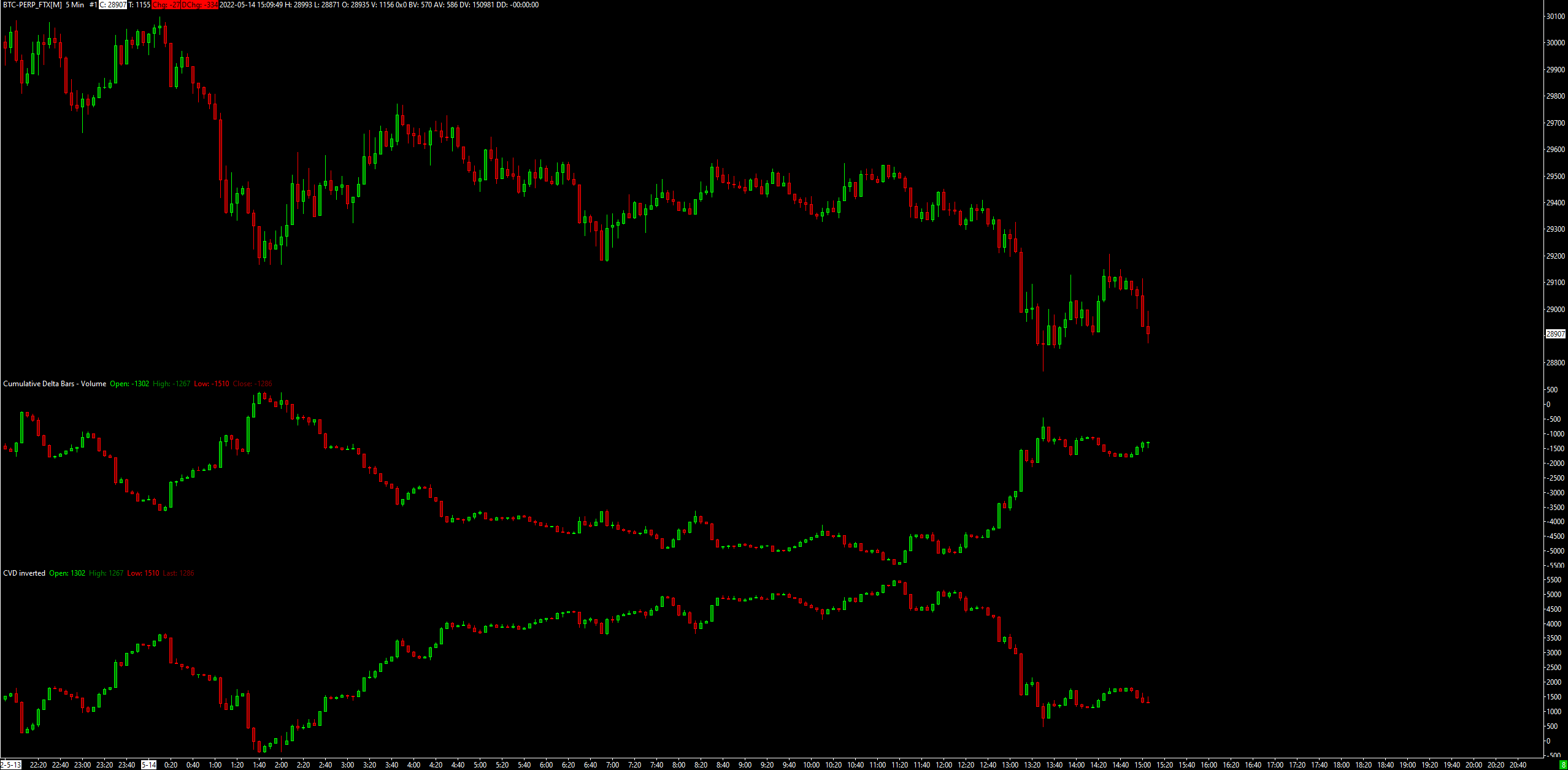 Hi I noticed you guys recently added support for FTX market data, which is great. I was wondering though if ask and bid volume has been switched around or something. When I added a Cumulative Delta Bars - Volume study to the chart I noticed it did the opposite of what you would expect from the price action (there will always be some divergences from PA of course, but it also diverged from other exchanges by a lot). I then added a Multiply Bars by -1 study, basing it on the Cumulative Delta Bars - Volume study. When doing this I get CVD in line with what one would expect and it's similar to other exchanges, and it's comparable to the CVD data from FTX that coinalyze provides. Is the ask bid volume switched? Date Time Of Last Edit: 2022-05-14 14:56:35