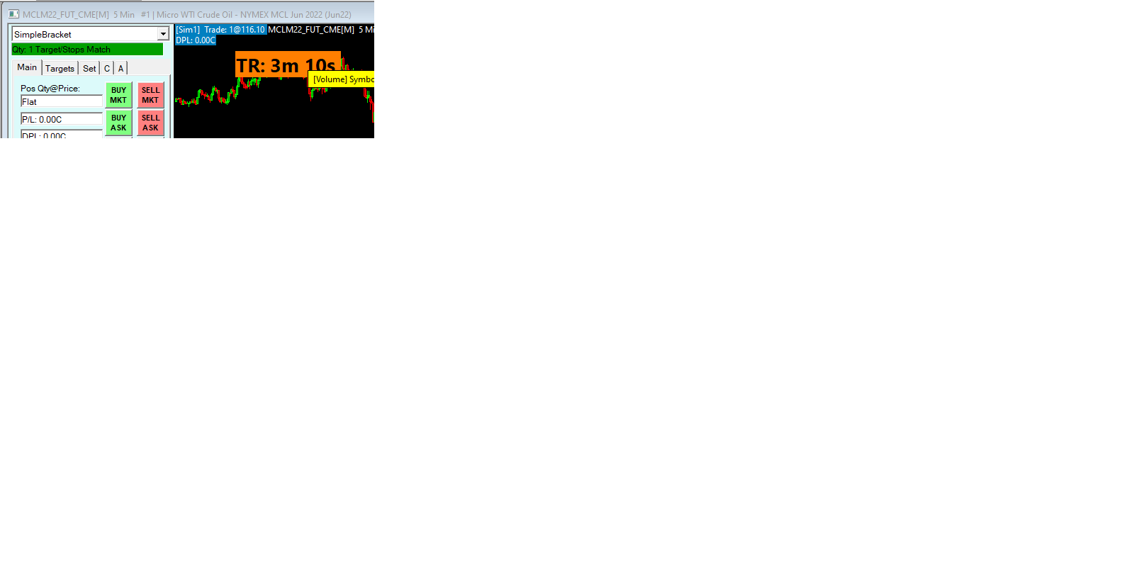 If those are the exact way you entered the symbols then those will not work. Each service that Sierra Chart can connect to uses their own specific symbol methodology. Our servers show that you are connected to our Teton Order Routing Service, in which case the MCL M contract for 2022 would need to be entered as the following: MCLM22_FUT_CME If you open a chart using File >> Find Symbol then you will always get the correct symbol format for the service you are using. Refer to the following for how to open a chart using the Find Symbol window: Getting Started, Opening Charts and Basic Trading: Open A Chart For the most reliable, advanced, and zero cost futures order routing, use the Teton service: Sierra Chart Teton Futures Order Routing |