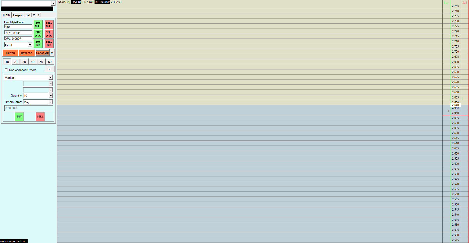 As mentioned above, we do not have Market Depth data for CFDs. The symbol of that Trading DOM is "NGAS", which is a CFD. If you had Market Depth data previously, then this would have been for a different symbol. For the most reliable, advanced, and zero cost futures order routing, use the Teton service: Sierra Chart Teton Futures Order Routing |