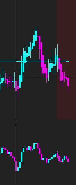 How could I have a visual divergence marker (verticle shaded line between the 2 chart regions or arrows or dots) between the top chart (HA volume-based candle) and the bottom chart (Cumulative Delta volume Divergence)? Referring to the picture, after the verticle white line, HA was pink (red) meanwhile CDV was light blue (green) in that specific candle I want some marker. I get to choose which one either verticle shaded line in both regions or a dot. basically marking the difference of color between both candles.