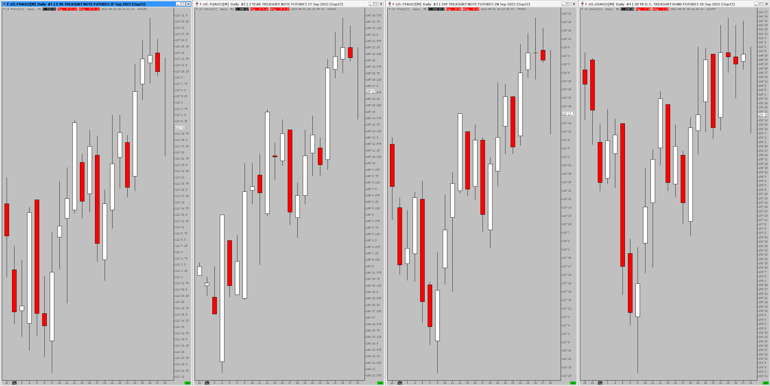 Dear Support, When I open historical Daily charts for the 2yr, 5yr, 10yr, and 30yr US Treasury futures, the daily bars strangely do not display an open - only the HLC values are displayed. This happens when I connect to CQG Trade Service and 'Allow support for SC Chart Data Feeds' is enabled. 'SC Data all services' displays the proper candles. I tried to delete and redownload data, but it does not help Affected symbols: F.US.FVAU22 F.US.TUAU22 F.US.TYAU22 F.US.USAU22. Below is a screenshot example. I am using v2394 SP12 /Denali. Can you please advise? |