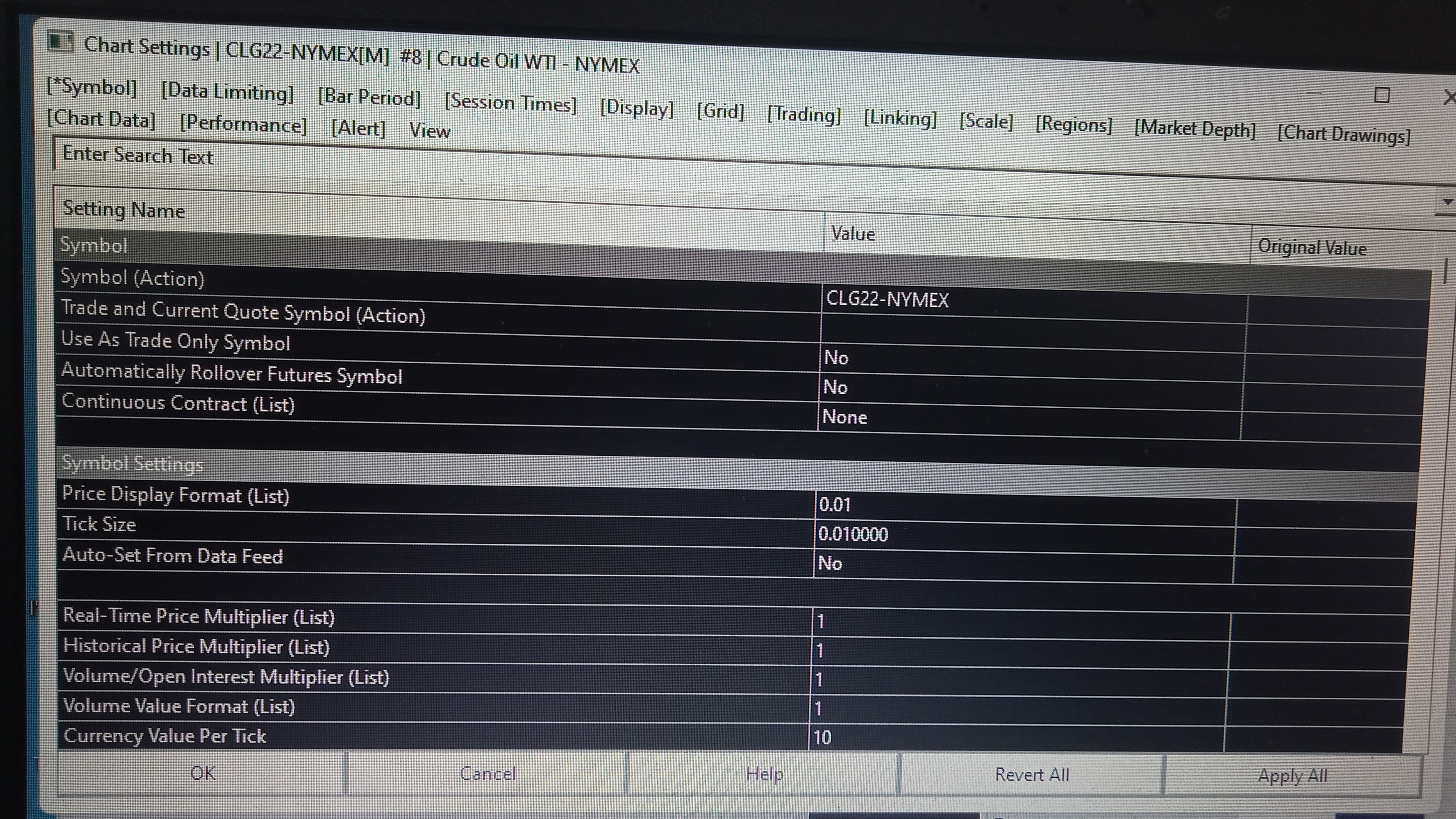 Make sure this option is set to Yes: Global Settings >> General Settings >> Settings Windows >>Use Single Click for Edit Control in Settings Windows When Not Selected. And then simply left click on the Symbol to edit it and press the displayed Select button to choose from a list. Refer to: Settings Windows Interface Sierra Chart Support - Engineering Level Your definitive source for support. Other responses are from users. Try to keep your questions brief and to the point. Be aware of support policy: https://www.sierrachart.com/index.php?l=PostingInformation.php#GeneralInformation For the most reliable, advanced, and zero cost futures order routing, *change* to the Teton service: Sierra Chart Teton Futures Order Routing |