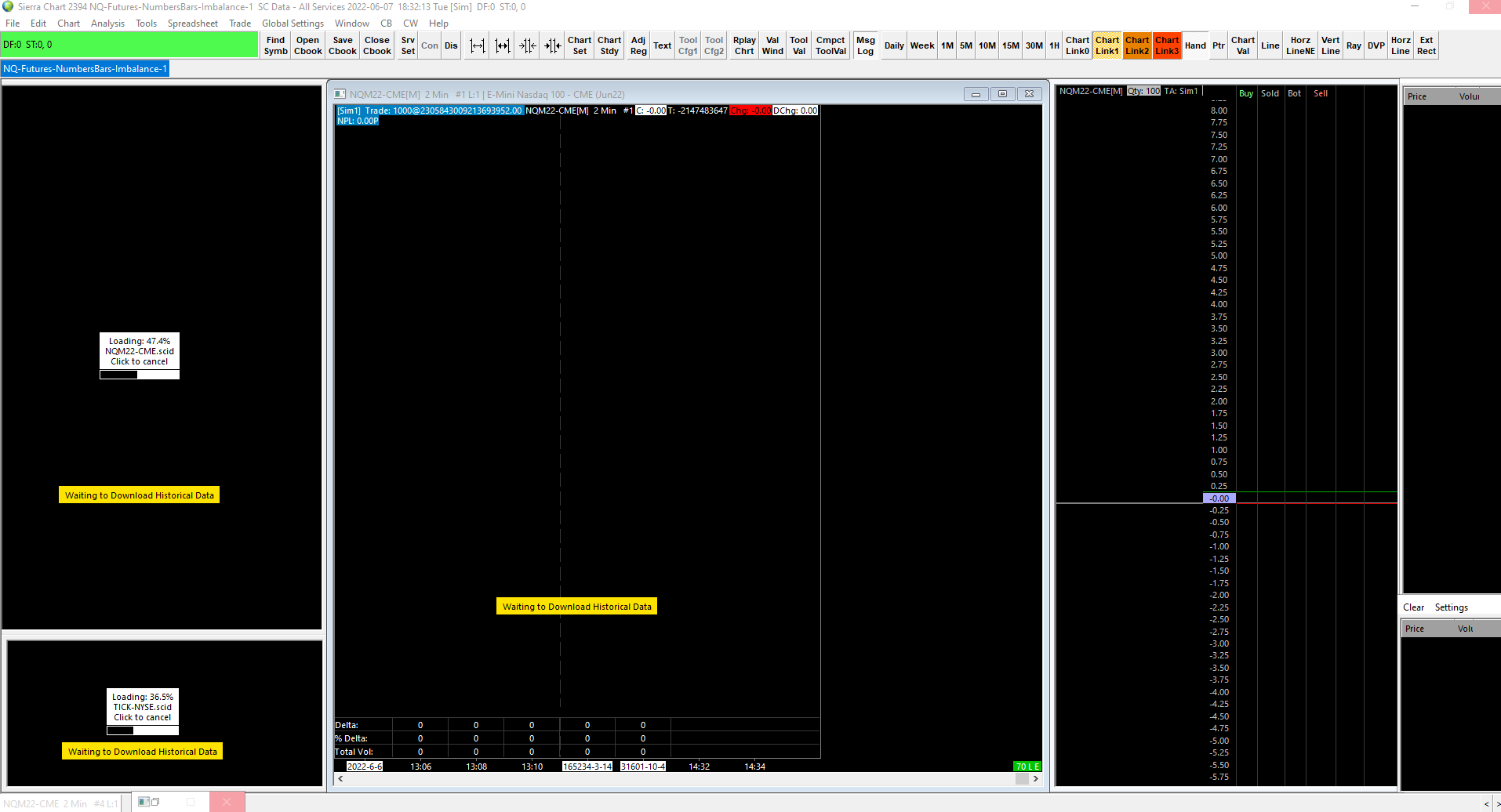 Every chartbook with NQM22 futures won't open. It will freeze in the middle and I can not use Sierra at all. Everything is frozen. This is how far it will open. I also installed different versions.