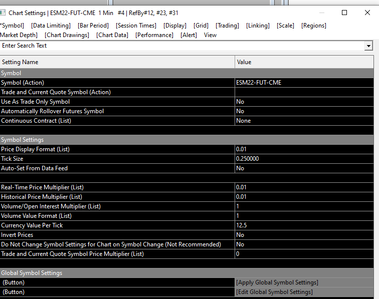 You definitely must have some unknown configuration causing this. It probably is related to chart linking. Set the Chart Link Number to None for the chart: Chart Settings: Linking And then see if you can change the symbol of the chart as you require. Sierra Chart Support - Engineering Level Your definitive source for support. Other responses are from users. Try to keep your questions brief and to the point. Be aware of support policy: https://www.sierrachart.com/index.php?l=PostingInformation.php#GeneralInformation For the most reliable, advanced, and zero cost futures order routing, *change* to the Teton service: Sierra Chart Teton Futures Order Routing |