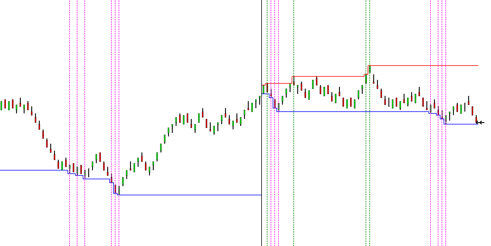 for example, when =AND(ID23.SG1[0] > ID23.SG1[-1], ID23.SG41[0]<ID23.SG41[-1],L[0]<L[-1],ID23.SG10<0,OR(AND(ID23.SG1[0]>ID23.SG1[-1],ID23.SG10[0]>ID23.SG10[-1]),AND(ID23.SG12[0]>ID23.SG12[-1],ID23.SG13[0]>ID23.SG13[-1]))) is true, a white triangle is displayed. Likewise when, =AND(ID23.SG1[0] < ID23.SG1[-1],ID23.SG41[0] > ID23.SG41[-1],H[0] > H[-1],ID23.SG10 >0,OR(AND(ID23.SG1[0<ID23.SG1[-1],ID23.SG10[0<ID23.SG10[-1]),AND(ID23.SG12[0]>ID23.SG12[-1],ID23.SG13[0]>ID23.SG13[-1]))) is true a purple triangle is displayed, as per the CBBOAC. When either of these alert conditions are met, i want the study to auto draw an extending rectangle drawstyle around the range of the candle in which the alert conditions are true. Please see attached a manually drawn example, note where i colored the areas green this is "active" or the most recent instance of my alert condition, i want this to turn "blue" when new alert conditions are met, ie instead of resetting the drawing, turn diff color to indicate the area being "older", likewise for red being active and orange older. |