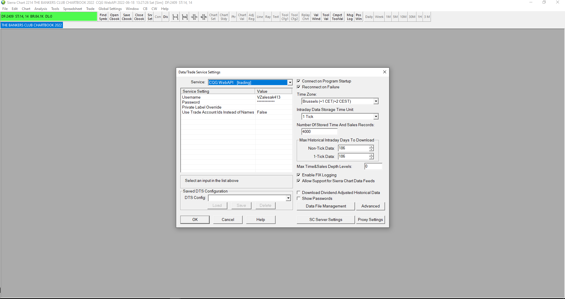 At this time the markets are closed. So it may seem like the data is delayed but that is normal. Tell us what particular market you want to create a chart of and trade? Then we will tell you what symbol to use. Sierra Chart Support - Engineering Level Your definitive source for support. Other responses are from users. Try to keep your questions brief and to the point. Be aware of support policy: https://www.sierrachart.com/index.php?l=PostingInformation.php#GeneralInformation For the most reliable, advanced, and zero cost futures order routing, *change* to the Teton service: Sierra Chart Teton Futures Order Routing Date Time Of Last Edit: 2022-06-18 13:40:04