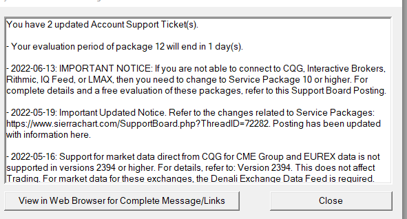 Sierra Chart Support - Engineering Level Your definitive source for support. Other responses are from users. Try to keep your questions brief and to the point. Be aware of support policy: https://www.sierrachart.com/index.php?l=PostingInformation.php#GeneralInformation For the most reliable, advanced, and zero cost futures order routing, *change* to the Teton service: Sierra Chart Teton Futures Order Routing |