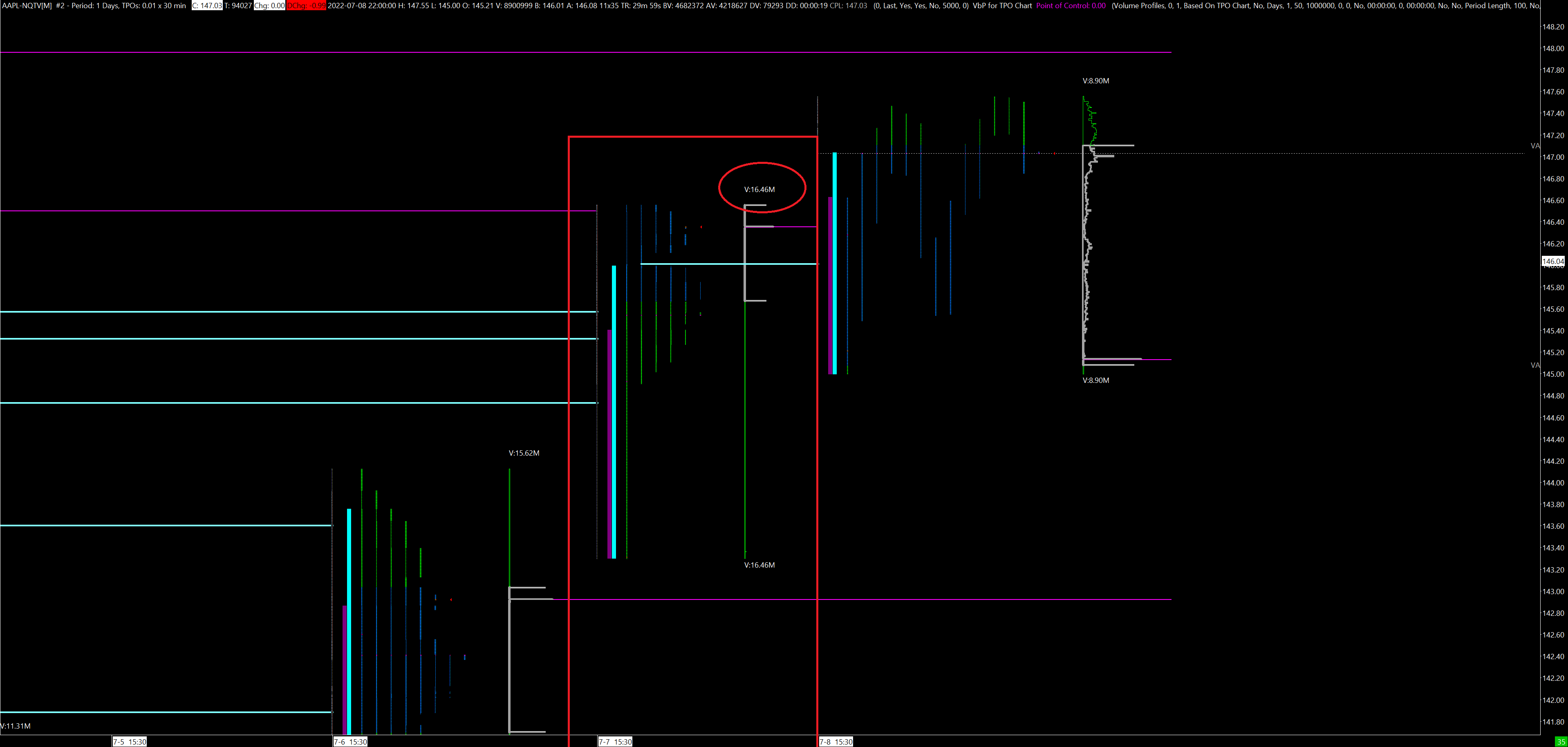Hi AAPL daily volume on 7 july is 66.25 Million, thats the data from Nasdaq, which i'm getting from SierraChart and TradingView too, there is no difference, so the data is correct. my question is, why on SierraChart market profile chart, the volume data is not the same? On AAPL market profile chart, the volume profile shows 16.4 million for july 7th, when the volume profile on the daily candle chart shows the correct data of 66.25 million. so the issue is with the volume profile for the TPO chart. Do you know where the problem is ? i'd like to get the same data on the market profile. ( see photos attached ) Thanks |