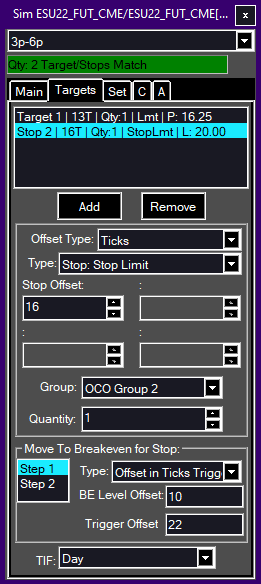 Not sure if sierra can do it but on tradovate the move to break even I think works different. I want to have it set up so my first TP gets triggered locking in profit and cutting some of my potential loss. I want my second size to be a runner but would like the stop to move down after my 2nd size has passed 6 points so if it comes back I lock in the 6 points with the ability to gain more points. My problem at the moment is when my 2nd TP gets hit it closes the trade immediately and this is frustrating because if price keeps moving in my direction I miss the trade. I have read through the break even section and it did not help me for second targets so if anyone has any real help it would be greatly appreciated Date Time Of Last Edit: 2022-06-27 17:23:31
