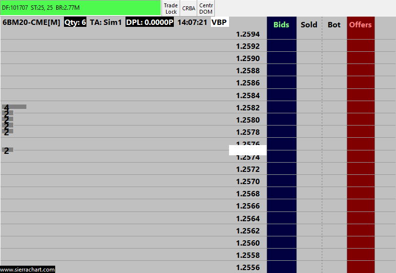 hello in this case my DOM BID, OFFERS, SOLD, BOT area is empty and Numbers are not shown in BID,OFFERS and ... can you please help me? https://www.sierrachart.com/image.php?Image=1656487935923.png |