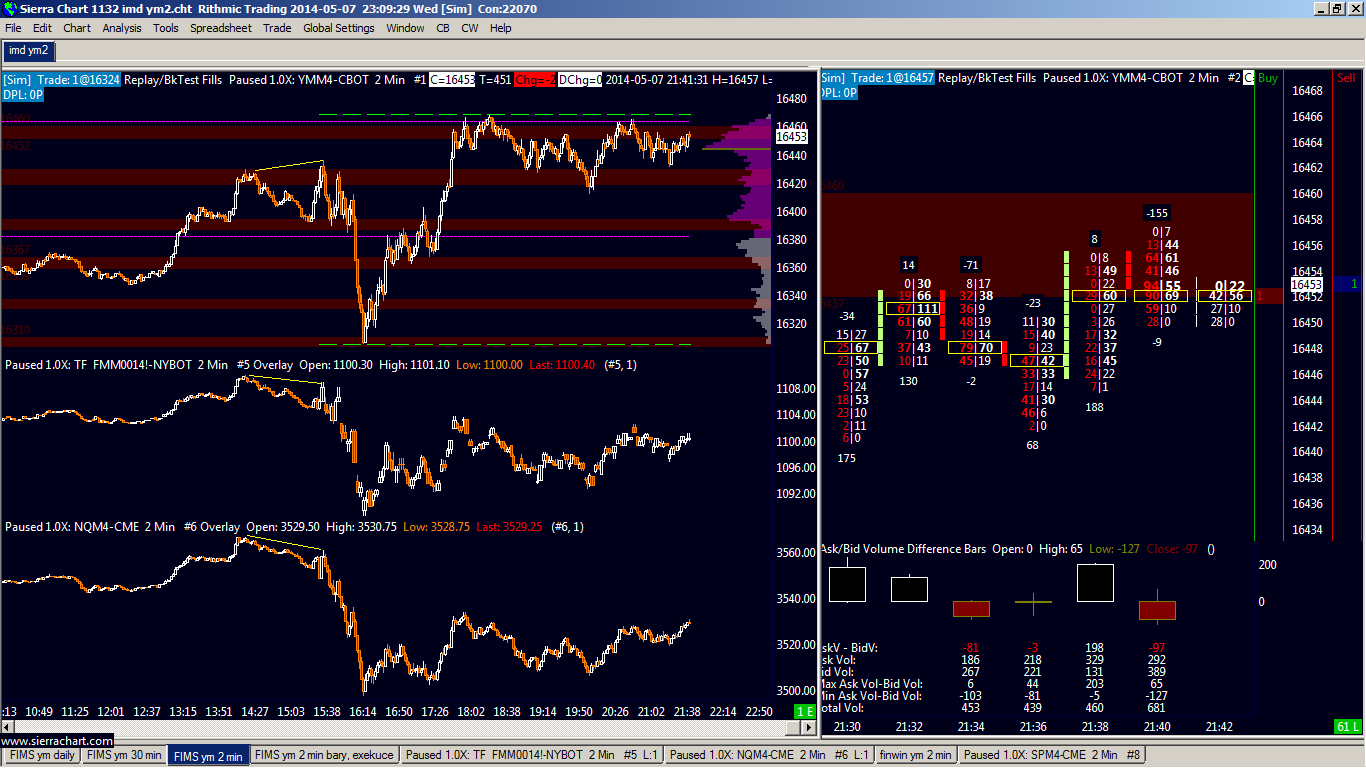 mmmm... either i am totaly stupid or you dont understand what i mean.. the point is when i move the chart to the left, it moves WITH the daily volume profile - http://www.sierrachart.com/image.php?l=1399496763445.png this is how it looks withouth daily volume profile when i move it left - http://www.sierrachart.com/image.php?l=1399496827391.png - and i wished the daily volume profile were fixed at the right line just as it is when i use one single volume profile (that is set as VISIBLE BARS) - http://www.sierrachart.com/image.php?l=1399496968293.png but i cant make it possible with volume profile that is set as MULTIPLE PROFILES FIXED BY TIME where the days and nights are separated, just like here - http://www.sierrachart.com/image.php?l=1399496763445.png so.. am i so stupid? Date Time Of Last Edit: 2014-05-07 21:10:24
