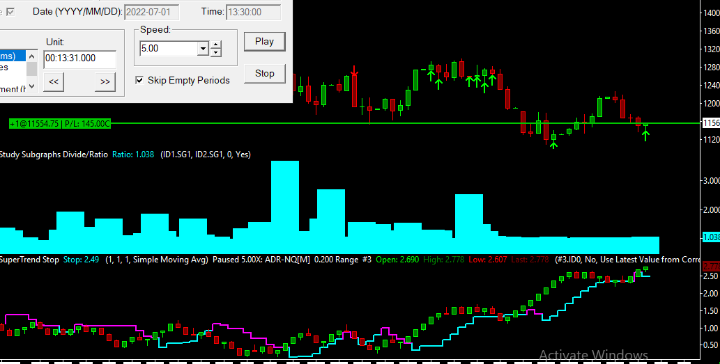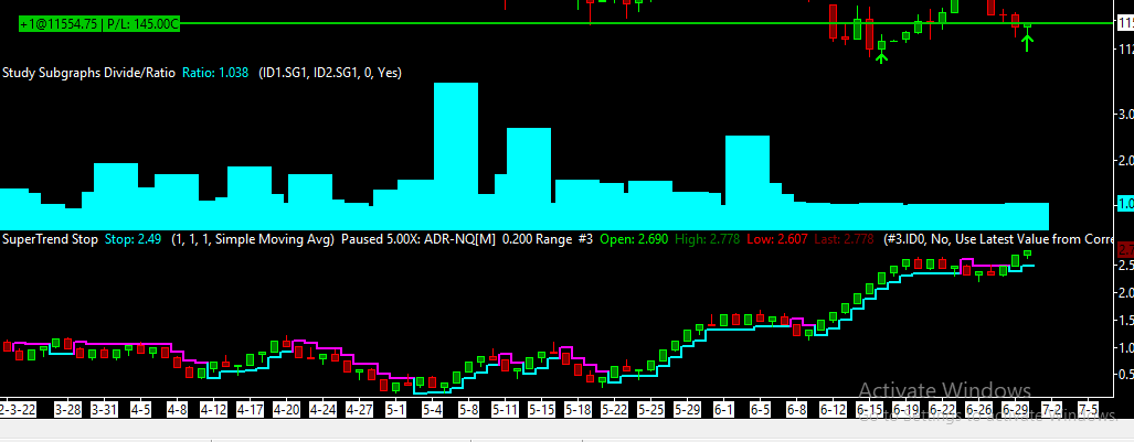 Hi, I have added the ''study/price overlay'' on a chart to overlay a 2nd chart on my main chart, but the main issue i get is when a study such as ''SuperTrend'' is based on the overlaid chart, it doesnt sync with the chart. it gets out of sync every time new bars form and i don't understand why. |