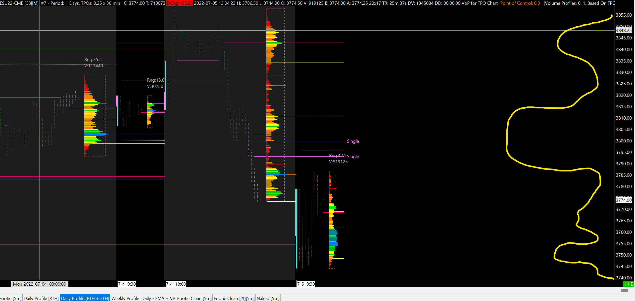 Hi, to better explain what I'm looking for, I added a screenshot. I'm looking for a complete volume profile to show on the right side of this chart, to encompass all price levels that are visible on the window in aggregate. I have tried multiple different combinations via studies but I can't get it to show. Any guidance would be appreciated! Thank you! Date Time Of Last Edit: 2022-07-05 17:09:09