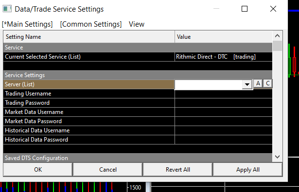 hi, i tried to connect to rithmic from apex trader funding; the instructions say to choose "rithmic direct - dtc [trading]" but the instructions say I should be able to choose from the server list; RIT5HMIC 01 CHICAGO AREA NON AGGREGATED the pull down menu is blank; and I cannot proceed please see screenshot attached |