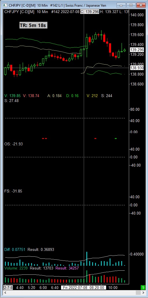 I sarted to watch chfjpy at 10 am, where there was no volume spike at 8:40 . I used fxcm data. ( I attached picture) The chart remained the same at least for 30 minutes. Than I opened another pair in that window ( in watchlist mode) and when i reopened chfjpy the chart showed a big volume spike, 2 hours earlier at 8:40 am. I also checked later in morningstar database, where 2 hours later there was no volume spike at all!! ( attached) I know that you calculate that bid-ask volume, but what time does it take for you, and what could cause that kind of divergency, as this spike is a seroius difference. https://www.sierrachart.com/image.php?Image=1657292979430.png https://www.sierrachart.com/image.php?Image=1657293501963.png |