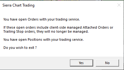 If I have a stop limit set or just a limit order and I close sierra chart will the orders still work while closed?. when i closed sierra chart i got this message
