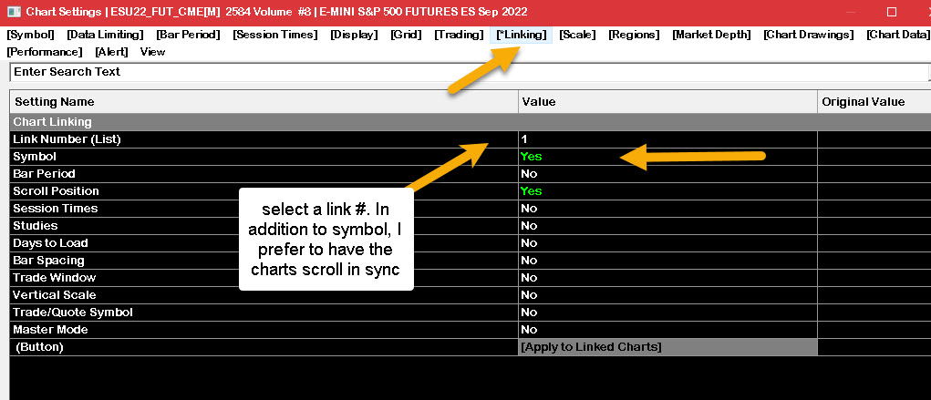 Following the link below, you would select to link the charts and watchlist - selecting the link to be symbol. That way, when you click on the watchlist, it will update the charts to that symbol. Chart Menu: Linking (Chart menu) Hope this helps. JohnR Date Time Of Last Edit: 2022-07-26 14:58:23