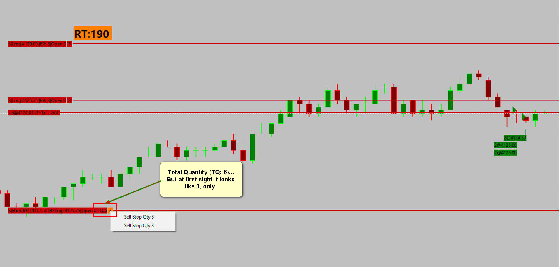 Thank you for the prompt response. I set up a second SIM-Account, so I can copy between two SIM accts. I was not sure if you wanted me to keep the same evaluator accounts chosen and just turn on SIM, or if a coyping between SIM1 and SIM2 would be equally fine. I have tried a trade with the Sim1->Sim2 setup (again, scaling in once after the initial entry) and on this first attempt I could not reproduce the issue. Is it a possibility that the issue was caused by Rithmic (the orders are routed via the Rithmic SIM server for the evaluations)? I frequently get Rithmic error messages along the lines of order modification failures, so it would not surprise me (although those messages have not really had any real effect on the trades so far). On that occasion, I noticed something that is a bit confusing (frankly, I have to admit that I've never noticed it before...): After the scale-in (again a total of 6 contracts being on then), I saw a "3" on the right side of the stop loss order, where usually the quantity of contracts of the order is displayed. So, at first I thought there's an issue again, as the quantity does not match the number of open contracts. But then I looked closer and it turns out that to the left it said "TQ" (Total Quantity?) "6". When I then hovered across the "3" it showed a split of 3 and 3. May I ask on this occasion what that is supposed to be? Does that mean that if I drag the SL order with the mouse (haven't done it), only 3 contracts of that order will be moved at a time? I attached a screenshot. I also attached the chartbook I used (private). So, I could not reproduce the exact same issue from earlier in SIM on this first attempt. (I don't have the time to continue the testing right now, sorry. I will try some more SIM trades later today...) Again, thanks for your prompt reply and for looking into the issues. Date Time Of Last Edit: 2022-08-01 11:48:24