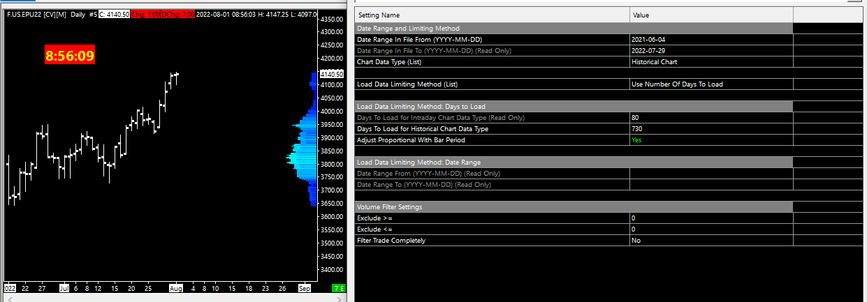 Everything about your setup looks good. Therefore, we have to ask the first obvious question - can you scroll the chart to the left in order to see older data? If it is not a scrolling issue, then follow the instructions at the the following link: Continuous Futures Contract Charts: Re-Downloading Continuous Futures Contract Data For the most reliable, advanced, and zero cost futures order routing, use the Teton service: Sierra Chart Teton Futures Order Routing |
