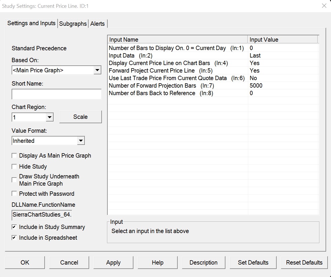 Yes we do recognize the issue is related to Session Times. Set this Input to Yes Use Last Trade Price from Current Quote Data. Sierra Chart Support - Engineering Level Your definitive source for support. Other responses are from users. Try to keep your questions brief and to the point. Be aware of support policy: https://www.sierrachart.com/index.php?l=PostingInformation.php#GeneralInformation For the most reliable, advanced, and zero cost futures order routing, use the Teton service: Sierra Chart Teton Futures Order Routing |