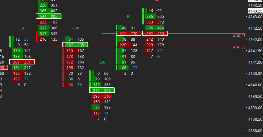 Hello, im using the "Trading System based on alert condition" and would like to get an alert if the current price crosses the previous candle poc from below like in the attached screen. So if the current price goes below the previous poc at 4142.25 and than crosses this poc from below i would like to get an alert. Here my current formula: =AND(CROSSFROMBELOW(ID11.SG42[-1], ID25.SG1), AVAP(L[-1], -1)=0, AVAP(L, 0)=0) ID25 - CurrentPriceLine-study ID11 - Numbers Bars Calculated Values-study to get the poc AVAP - to detect finished auctions That works quite well, but it seems that the alert also gets triggered on the poc of the third last candle at 4141.75 because this poc seems to be included in the range. That should not happen. I only want an alert for the previous candle poc. How can i achieve this? Regards, Kai |