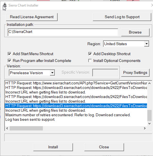 We made certain all of the files are on the server. We are not able to reproduce this problem. Try again. Stuck at crashreporter.exe few times so canceled This means that the larger Sierra Chart executable file is being downloaded. Wait. In your case try the "Europe" server through the "Region" selection.