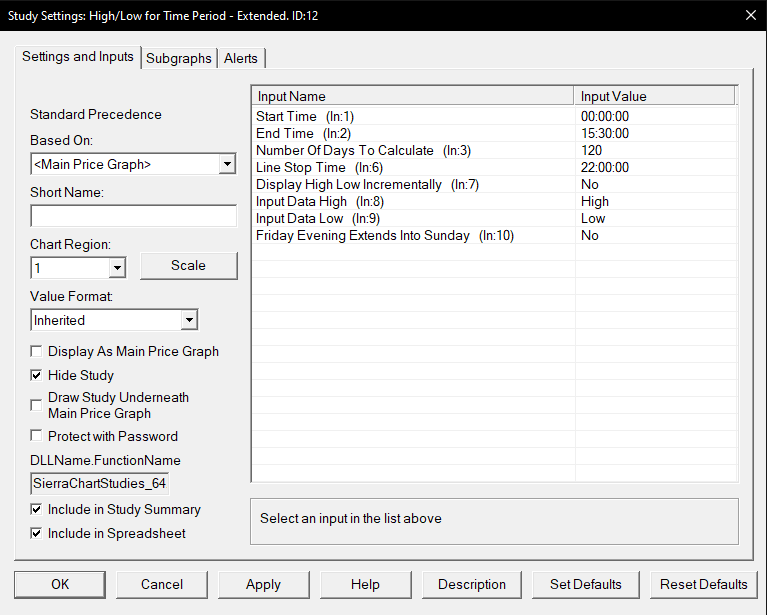 Oh well, just when I thought I had everything done, now the ONH and ONL is not shown on the right place. I followed all the steps I read on Sierra but there is still something I must be doing wrong. I followed the next steps: - I created a high/low for time period extended. (You can see the settings on picture 1) After I created a spreedsheet formula for the ONH and one for the ONL with the following settings: ONH: =IF(AND(BARTIME>=TIMEVALUE("15:30:00"),BARTIME<TIMEVALUE("22:00:00")),ID12.SG1,0) ONL: =IF(AND(BARTIME>=TIMEVALUE("15:30:00"),BARTIME<TIMEVALUE("22:00:00")),ID12.SG2,0) But I find out the ONH and ONL is not shown on the right place, it should be on: ONH: 4300.25 ONL: 4279.25 And it's actually on 4292.5 for the ONH and 4286.5 for the ONL. What am I doing wrong? Thank you |