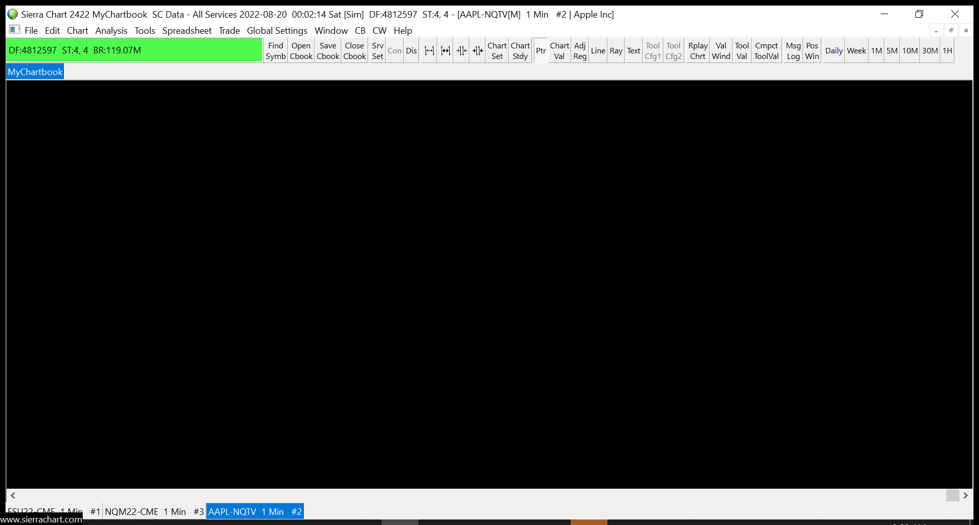 sorry it was a typo error I did select the correct symbol which is AAPL-NQTV I am attaching few images for reference of the issue I am facing. https://www.sierrachart.com/image.php?Image=1660924886706.png https://www.sierrachart.com/image.php?Image=1660924938736.png daily chartis working as expected, only intraday is blank https://www.sierrachart.com/image.php?Image=166092509226.png |