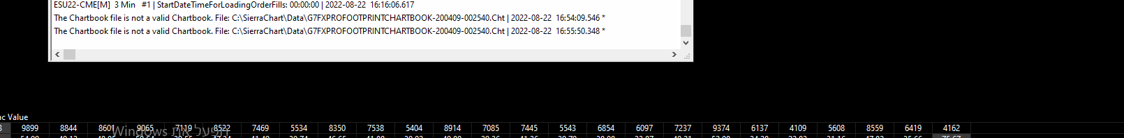 Provide us that Chartbook file by following these instructions: Support Board Posting Information: Attaching a File (Optional) Sierra Chart Support - Engineering Level Your definitive source for support. Other responses are from users. Try to keep your questions brief and to the point. Be aware of support policy: https://www.sierrachart.com/index.php?l=PostingInformation.php#GeneralInformation For the most reliable, advanced, and zero cost futures order routing, use the Teton service: Sierra Chart Teton Futures Order Routing |