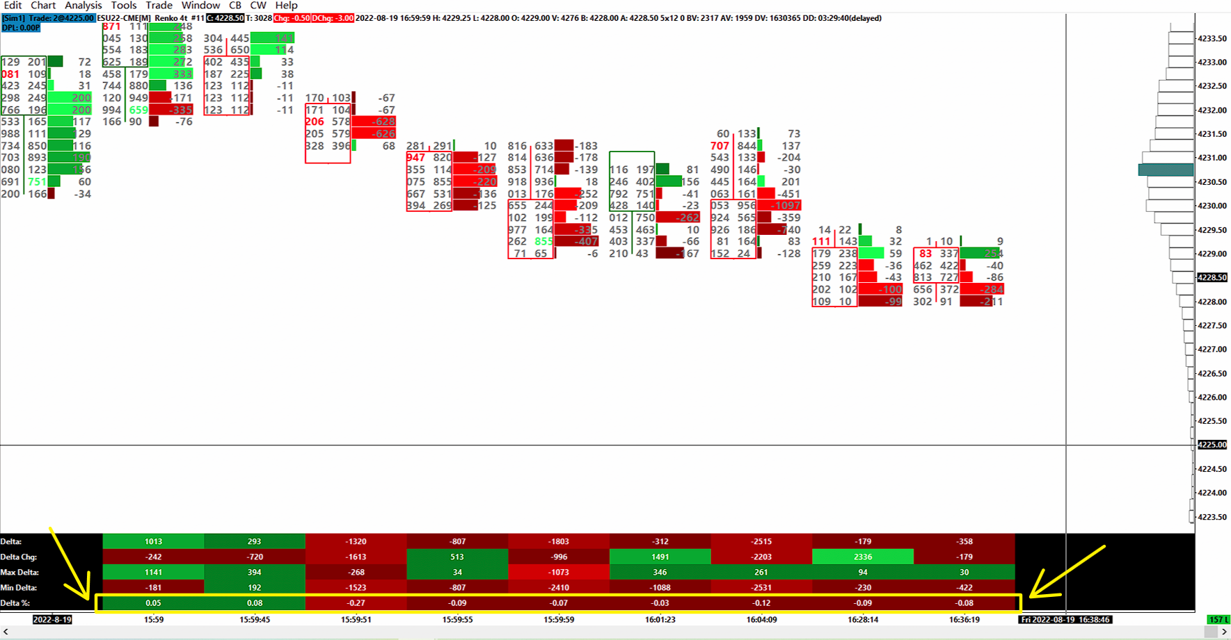 Hi SC, I am looking for a setting to display the Delta % on the footprint as an actual %. Mine is showing a clear % but one of my traders cant get his platform to show it as a %. The platform shows it as a normal number so for example 1% will be displayed as 0.01. I have attached a screenshot with the area in question marked. He is using my footprint so the settings are the exact same. Thanks in advance. |