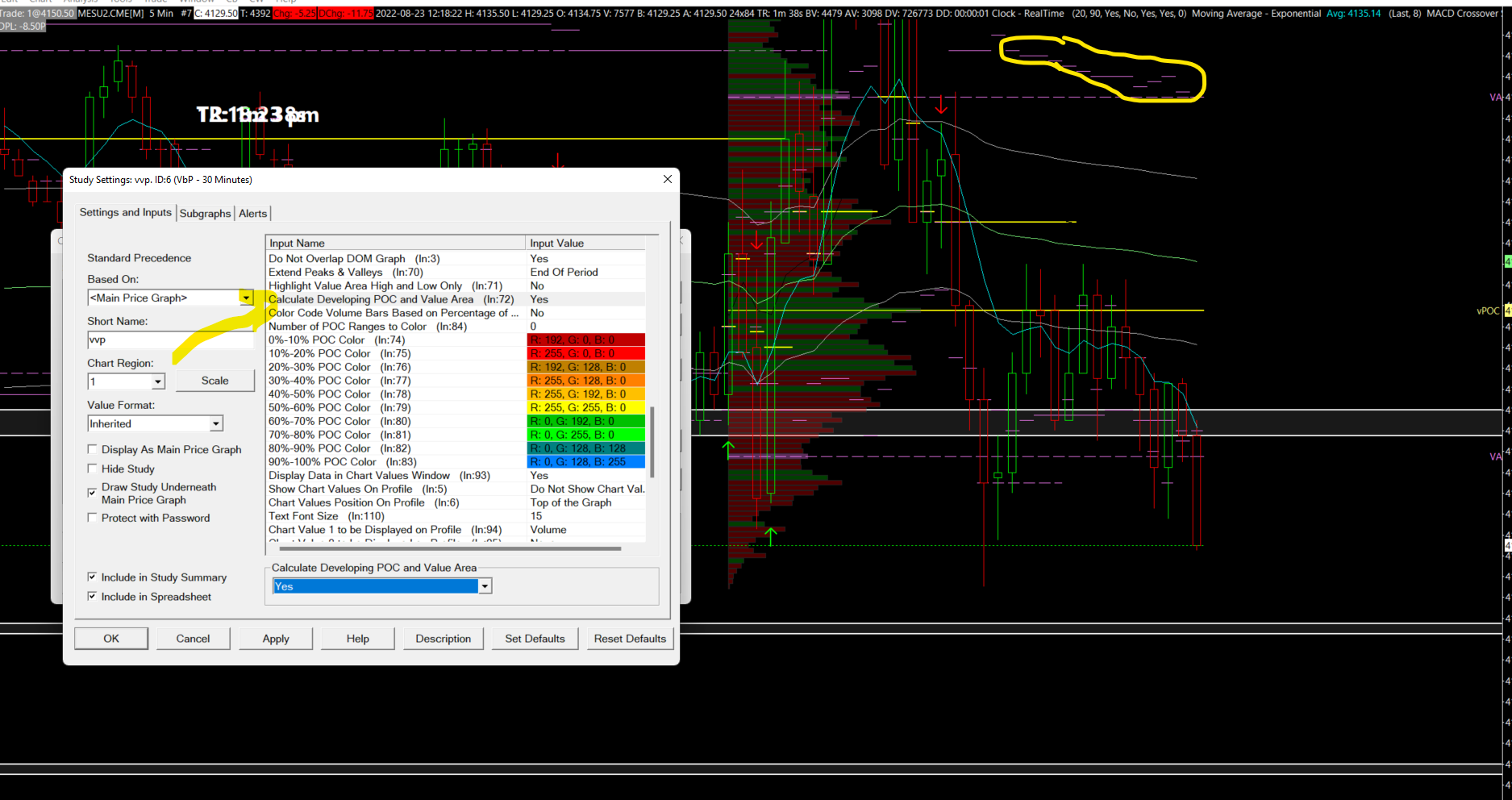 highlight developing poc/VA in volume profile study.