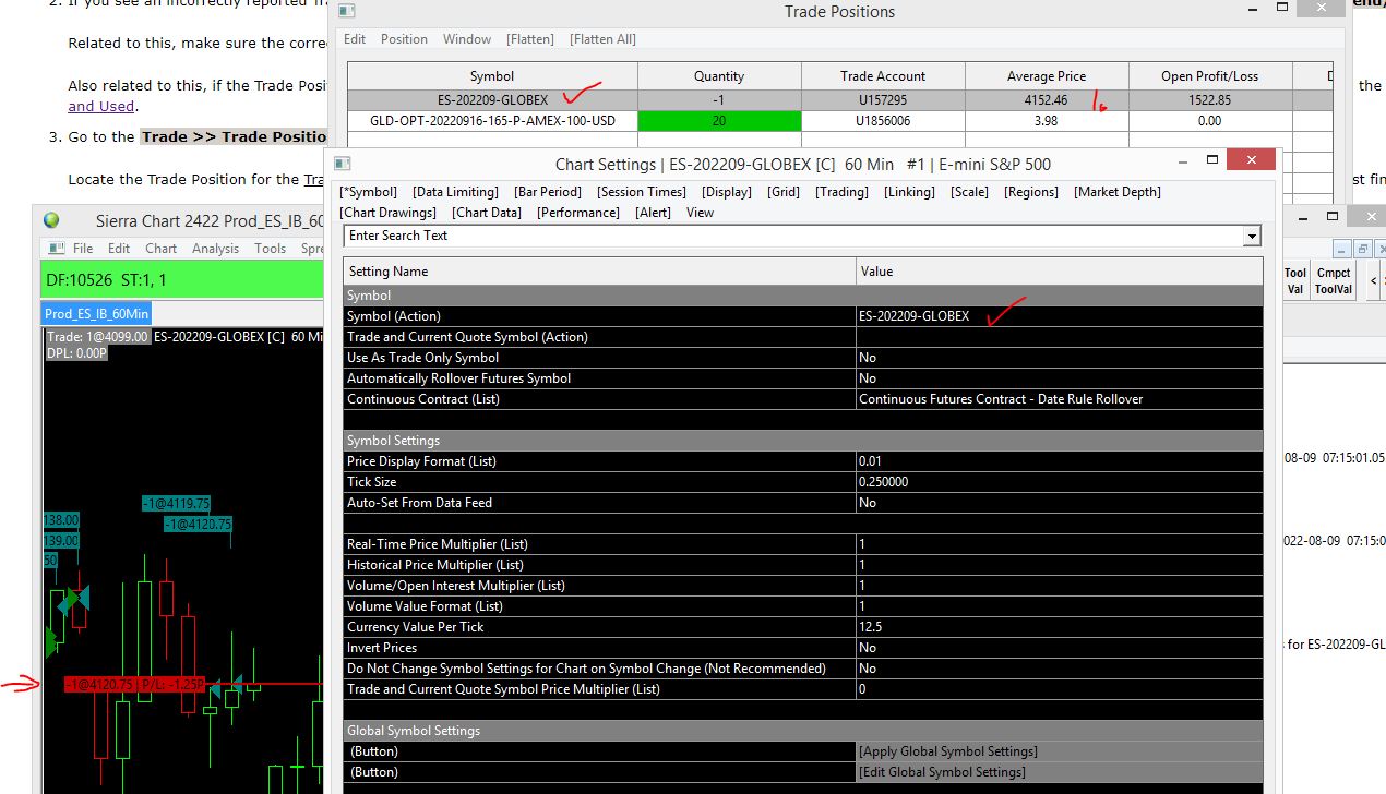 Hello, I started having problems with Sierra chart not showing correct position. SC is calculating the position based on the last trade that it sees but it is incorrect. There are missing (manual) trades made in TWS in the Trade Activity Log. And SC assumes that the last downloaded trade was opening trade which is incorrect. Trade Positions window shows correct Position and opening price When I click "Refresh trade data from service" i get Interactive Brokers | Received Trade Positions download end message for account U185* | 2022-08-09 07:43:41.363 I am running latest SC version 2422 How can I get SC to show correct opening price in SC chart window? I did follow Trading Information Windows: Incorrectly Reported Trade Position Quantity already. thanks Josef |