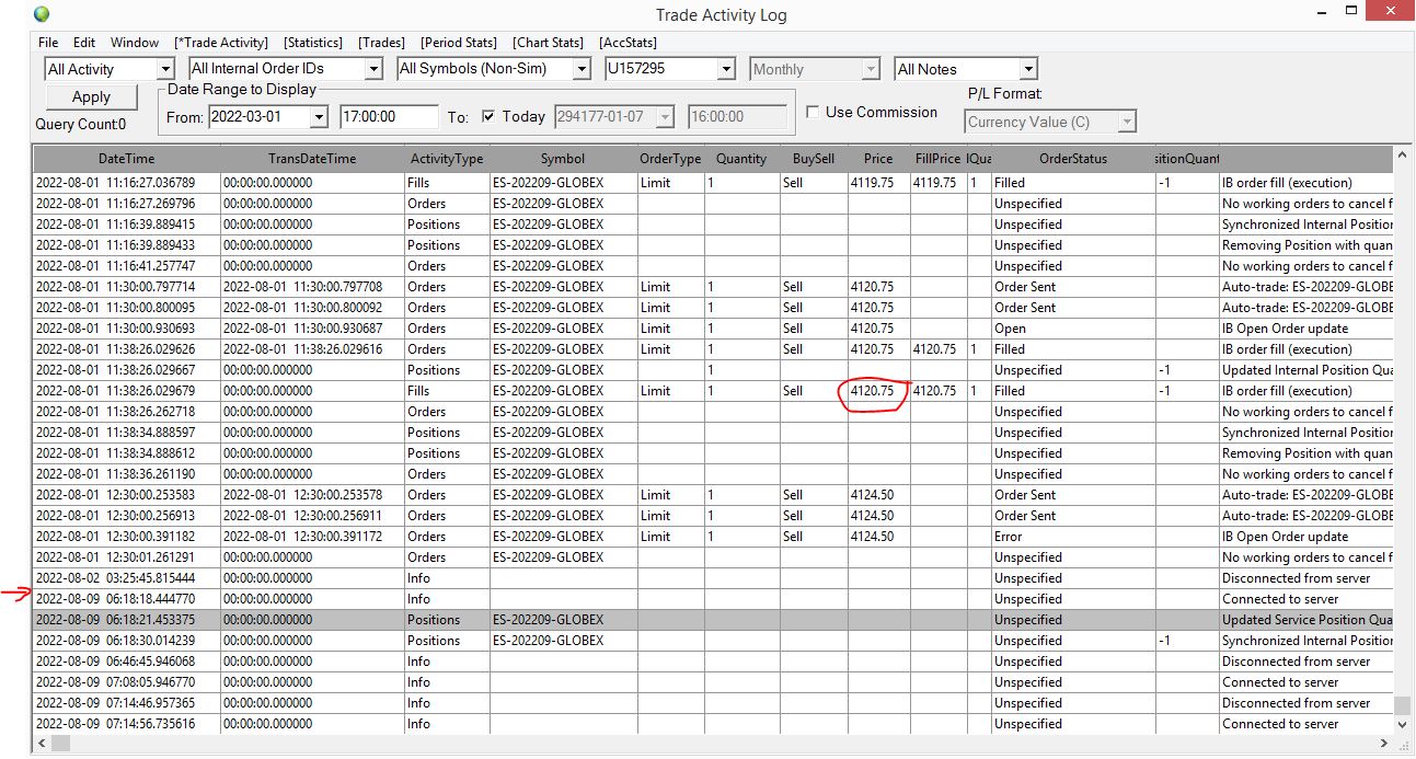Hi, the problem is that the chart shouw entry as 4120.75 but in reality the entry was at 4152.46 as shown in the trade positions table. The trading program will see a loss but in reality there was a profit. Eventually it closed the position due to stop loss. I think the whole problem started after there was a liquidation of position by IB due to margin. Date Time Of Last Edit: 2022-08-29 09:53:12