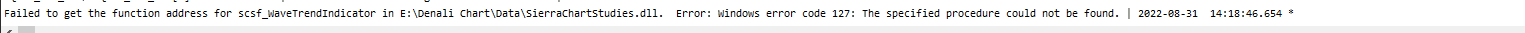 Hello After updating to 2425 I began getting the attached error after opening the studies window for the first time after each Sierra Chart start up. I know many other users who are also experiencing this same error under the same circumstances. Let me know if you need me to provide a message log. |