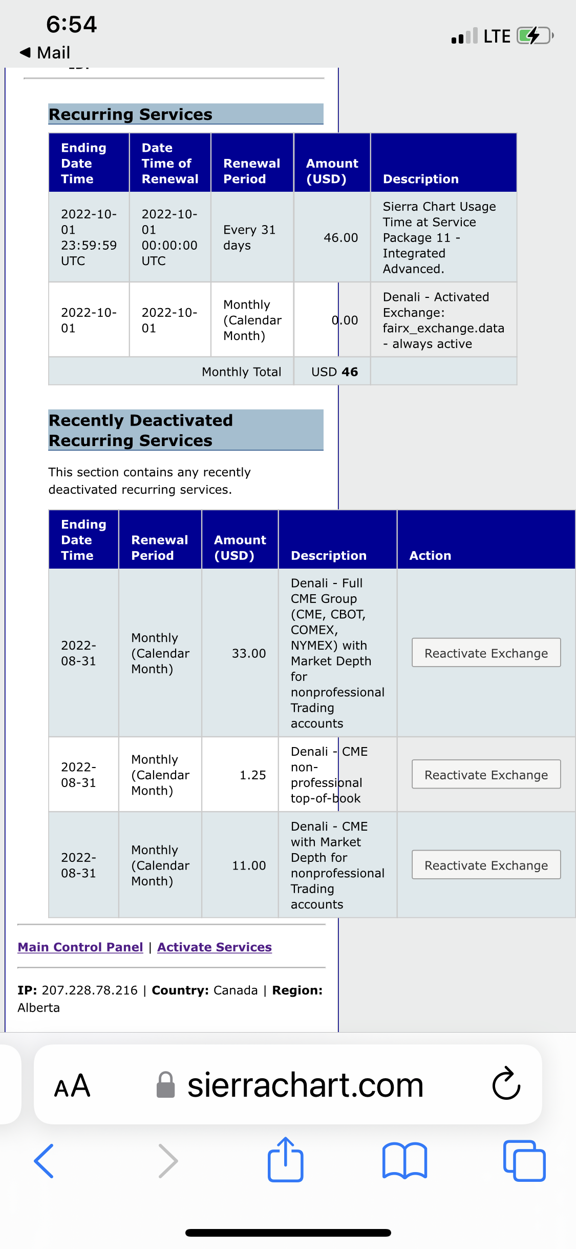 The reason why you are not seeing what you expect is because you activated the "Full CME Group (CME, CBOT, COMEX, NYMEX) with Market Depth for nonprofessional Trading accounts" today (August 31, 2022) which cost $33.00. Since you did this on the last day of the month, you only got a few hours of use of that data, and when it went to renew on the first of September (we do all our calculations based on Greenwich Mean Time), you did not have enough funds, so it did not renew. You can see all the transactions for your account by selecting the View Transaction Log and Payment Receipts from the main Account Control page. You can also select the following link to go to this page: https://www.sierrachart.com/UserControlPanel.php?page=TransactionLog For the most reliable, advanced, and zero cost futures order routing, use the Teton service: Sierra Chart Teton Futures Order Routing |